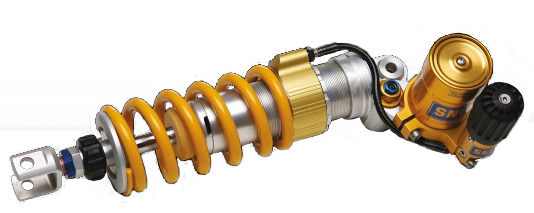 Новый моноамортизатор Uni-Trak производства компании Öhlins имеет газовый амортизатор, компенсационный бачок, регулировку предварительного натяжения пружины